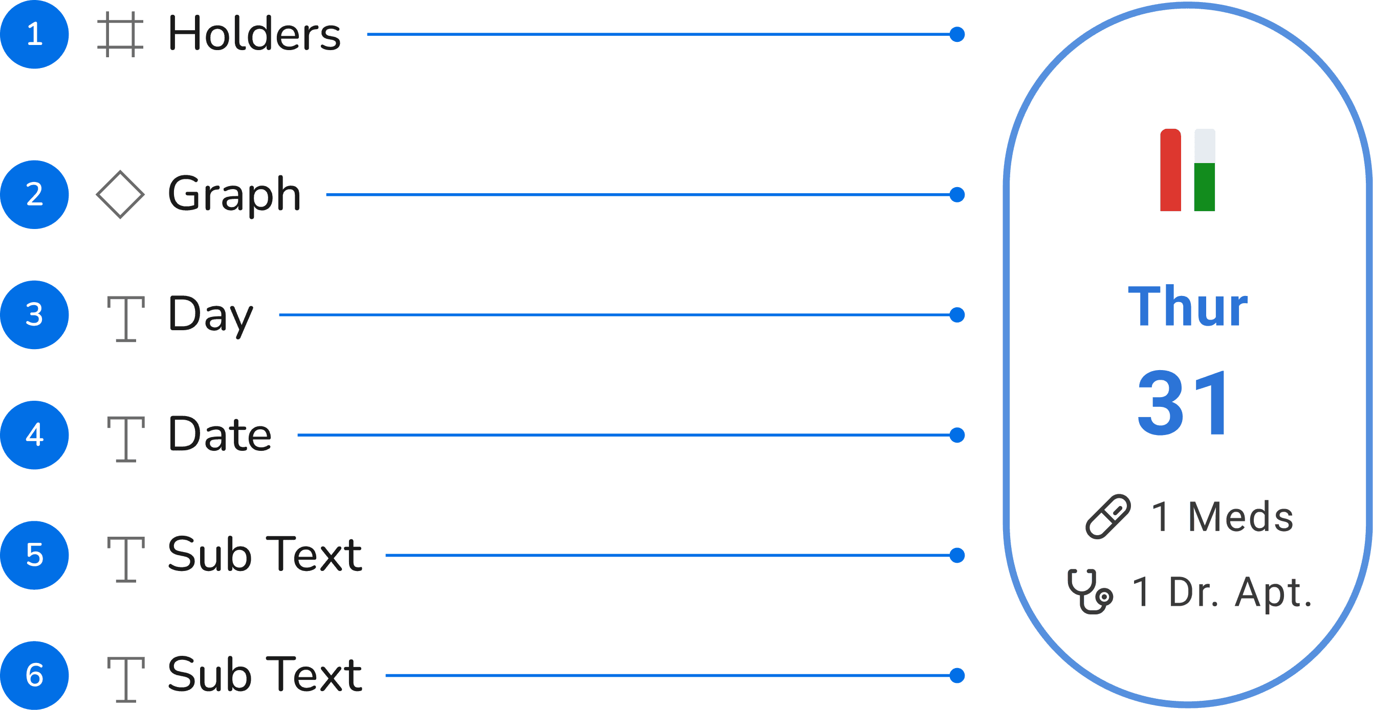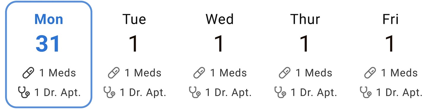 Day, date, and subtext guide users and support primary or secondary task actions.