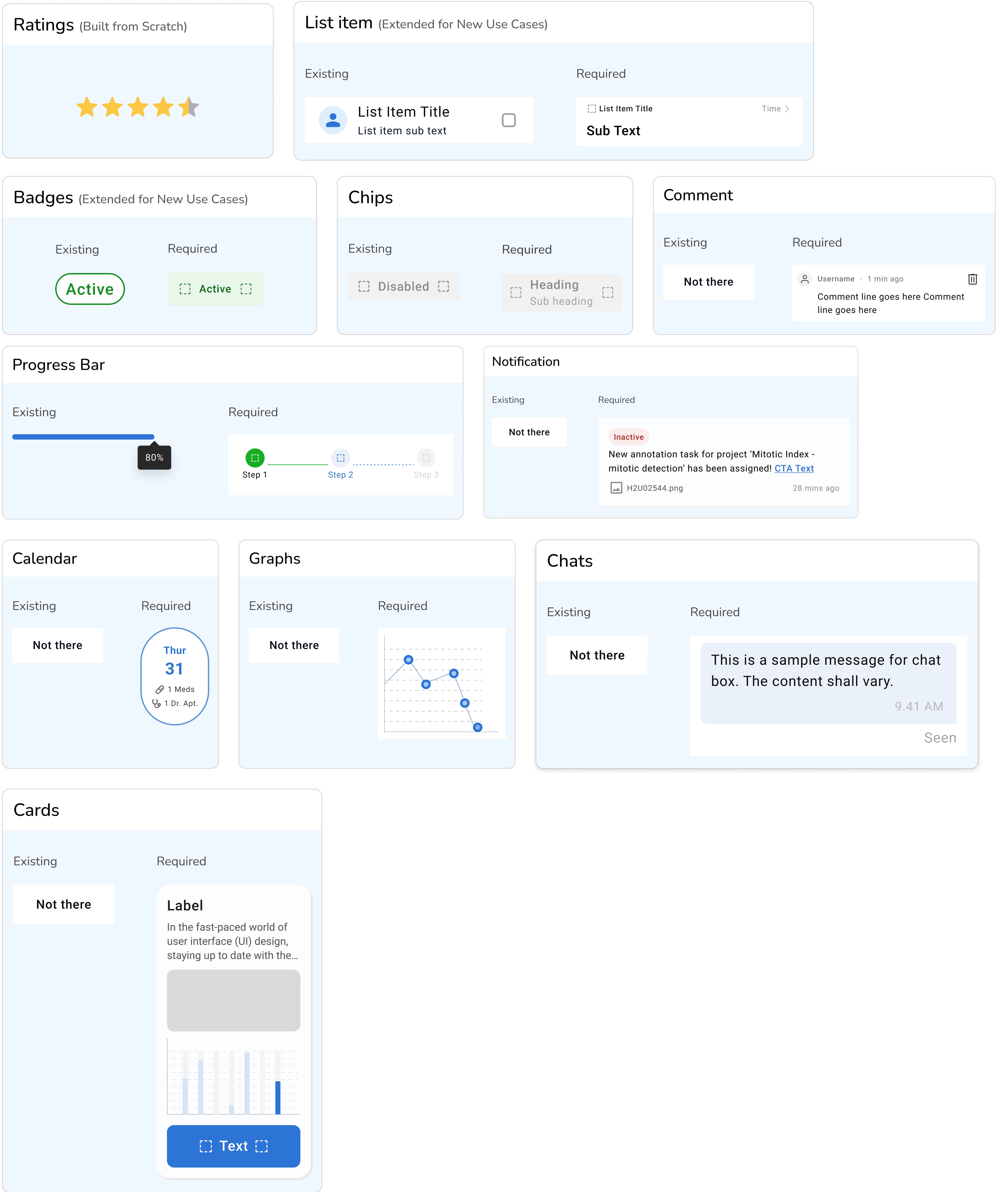 Extended the Design System by adding missing mobile/web, and smartwatch components. These additions do not replace existing components; instead, they address different use cases and fill gaps for the overall library.